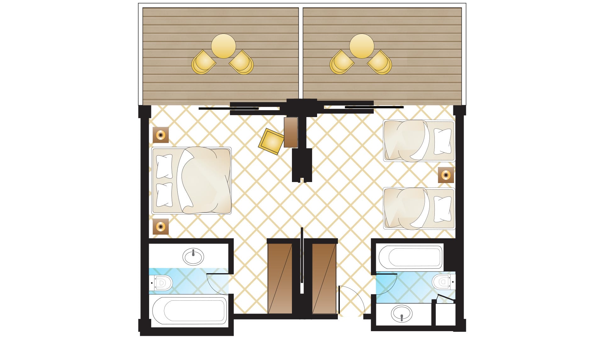 - SIZE: Spacious 37m² room with two separate bedrooms divided by a door